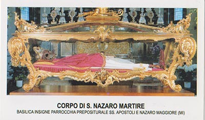 Era un giovinetto che era morto per Cristo, poco altro si sa di lui . Ricomposte le sacre ossa, ricoprendole di cera, sembrava dormisse in quell’urna appositamente fatta per lui, che nella seconda metà del 1843, subito venne esposta al culto dei fedeli.