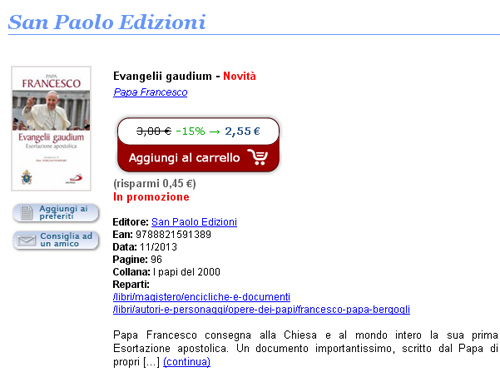 La gioia del Vangelo riempie il cuore e la vita intera di coloro che si incontrano con Gesù. Coloro che si lasciano salvare da Lui sono liberati dal peccato, dalla tristezza, dal vuoto interiore, dall’isolamento. Con Gesù Cristo sempre nasce e rinasce la gioia. In questa Esortazione desidero indirizzarmi ai fedeli cristiani, per invitarli a una nuova tappa evangelizzatrice marcata da questa gioia e indicare vie per il cammi [...] (continua)