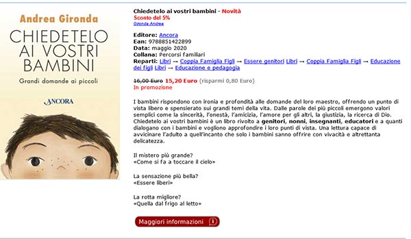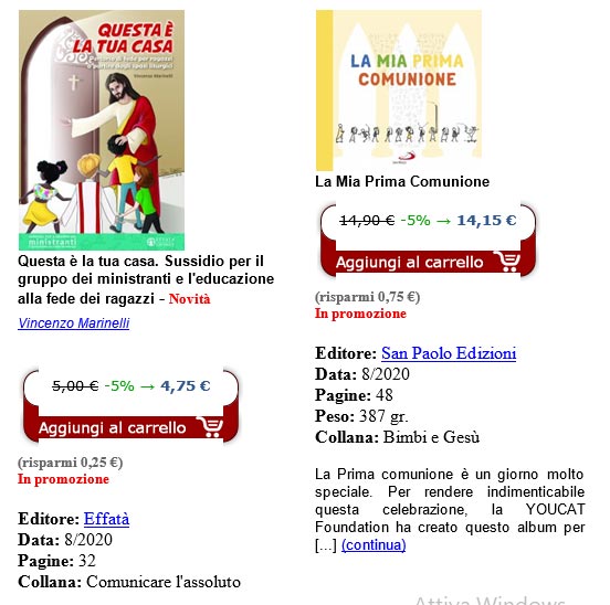 Ben consapevoli che questo è per la Chiesa un momento storico molto difficile, dove le radicalizzazioni e le opposizioni sono facili, e altrettanto consci di essere l'e-commerce di riferimento dell'editoria cattolica italiana, cerchiamo di mantenerci neutrali, e limitarci a far conoscere e diffondere le pubblicazioni degli editori cattolici, tutti, senza alcun filtro o cernita: uguale spazio hanno "progressisti" e conservatori "ultra tradizionalisti". Sta al lettore scegliere e giudicare. Noi siamo solo un veicolo.