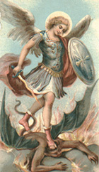 (abiti da pastore, bandiera, IHS, fuoco, spada,