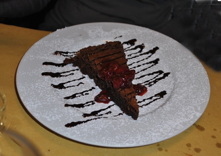 Torta caprese con salsa d’arance