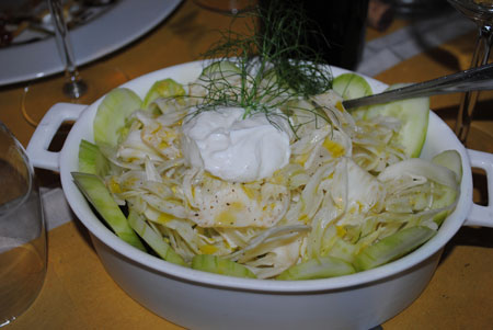 Insalata di finocchi selvatici, cetrioli e burrata