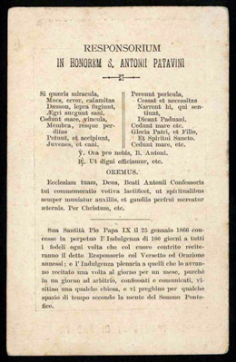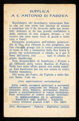ingrandimenti del retro di immaginette con le diverse preghiere al Santo. |